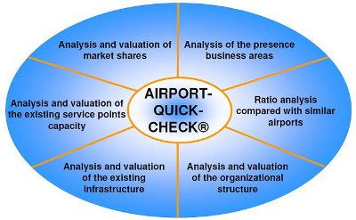 The results of an Airport-Quick-Check show up the existing weak points and offer an ideal starting point for restructuring, improvements or optimizations.
